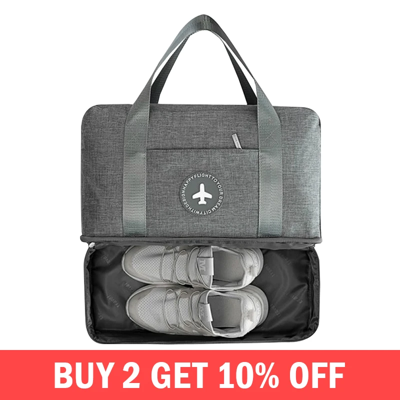 استعارات من BAKINGCHEF طبقة مزدوجة السفر حقيبة التخزين النساء الرجال الملابس الداخلية والأحذية الأمتعة المنظم زيبر حزم يد حالة